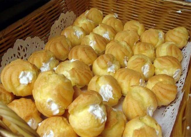 正统的泡芙。因为外型长得像圆圆的甘蓝菜,因此法文又名CHOU,而长型的泡芙在法文中叫ECLAIR,意指闪电,不过名称的由来不是因为外型,而是法国人爱吃长型的泡芙,总能在最短时间内吃完好似闪电般而得名。
