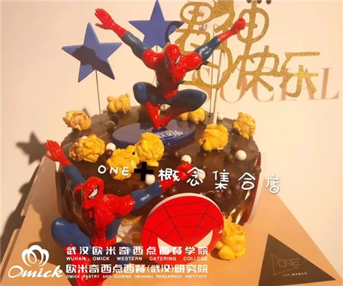 这是来武汉欧米奇学习没多久做的一款蜘蛛侠主题蛋糕,是送给她儿子的,准备给他一个生日惊喜,因为儿子喜欢蜘蛛侠。