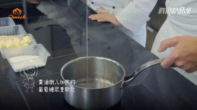 tip:室温软化的黄油放入锅里小火加热,变成液态,离火降温