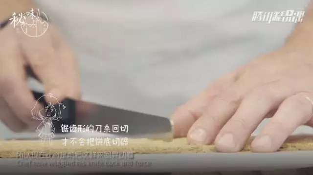 tip:拿出烤好的派皮,根据咖啡杏仁饼的大小,用锯齿形的刀来回切均匀,防止切碎