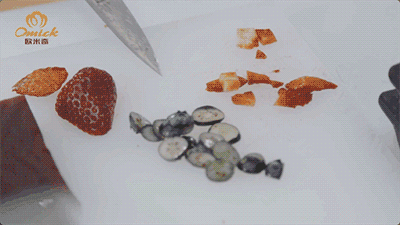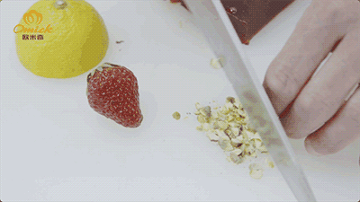 Step8 将开心果碎切好,并且准备好草莓以及蓝莓做摆盘准备;