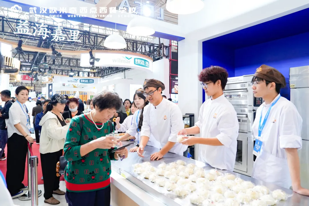 展位俨然化身为生动的移动课堂与创意孵化器。学员身着统一制服,在操作台前沉稳有序地进行面团整形、烘烤、装饰,将课堂所学转化为色香味俱全的产品,吸引了大量观众驻足观摩、拍照。